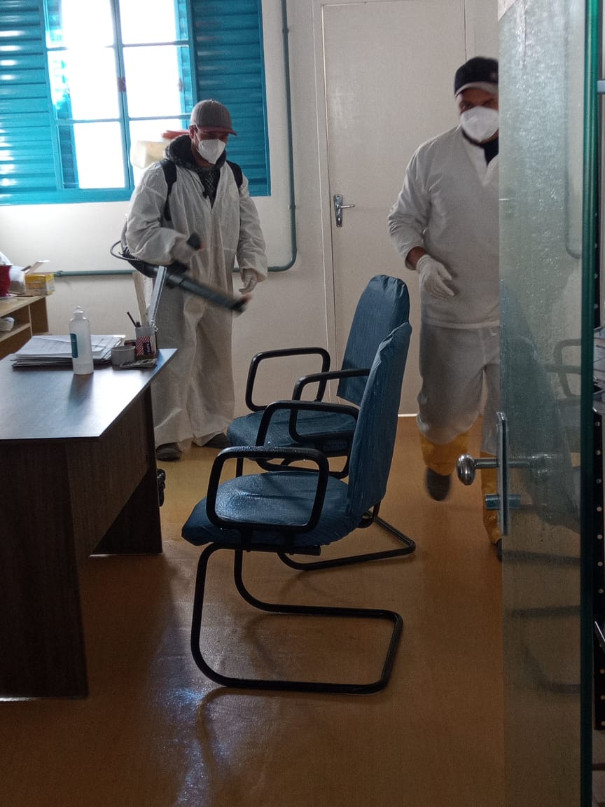 Pela tarde, o Lar passou por um processo de desinfecção.