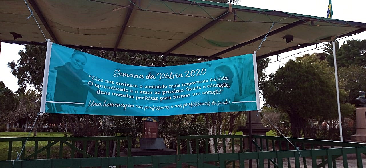 Assim mesmo, como ocorre religiosamente ano a ano, o palanque foi montado junto a praça General Osório e a chama, acesa, bem como a bandeira do Brasil mantida hasteada diariamente. No palco, há uma faixa homenageando os profissionais da saúde, linha de frente no enfrentamento ao Covid-19.